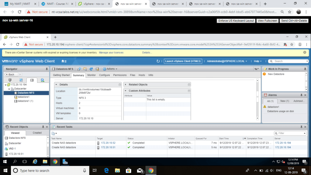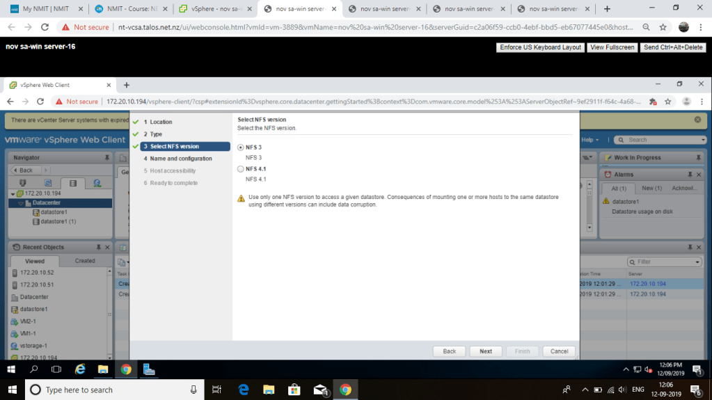 in the left hand side go to the data store-NFS ,expand the detail option and we can see the information type ,host ,server